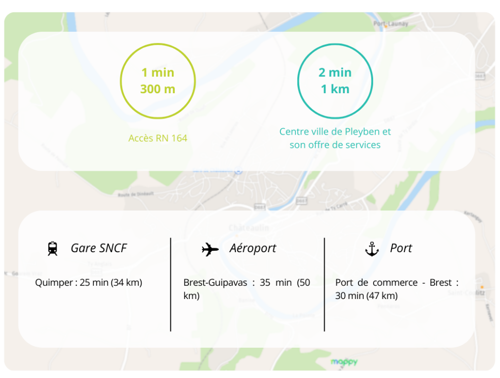 Située en entrée d’agglomération de Pleyben le long de la RN 164 (Châteaulin-Carhaix) sur une superficie totale de 24 Ha, la zone d’activités du Drevers compte une 50aine d’établissements pour près de 520 emplois salariés.